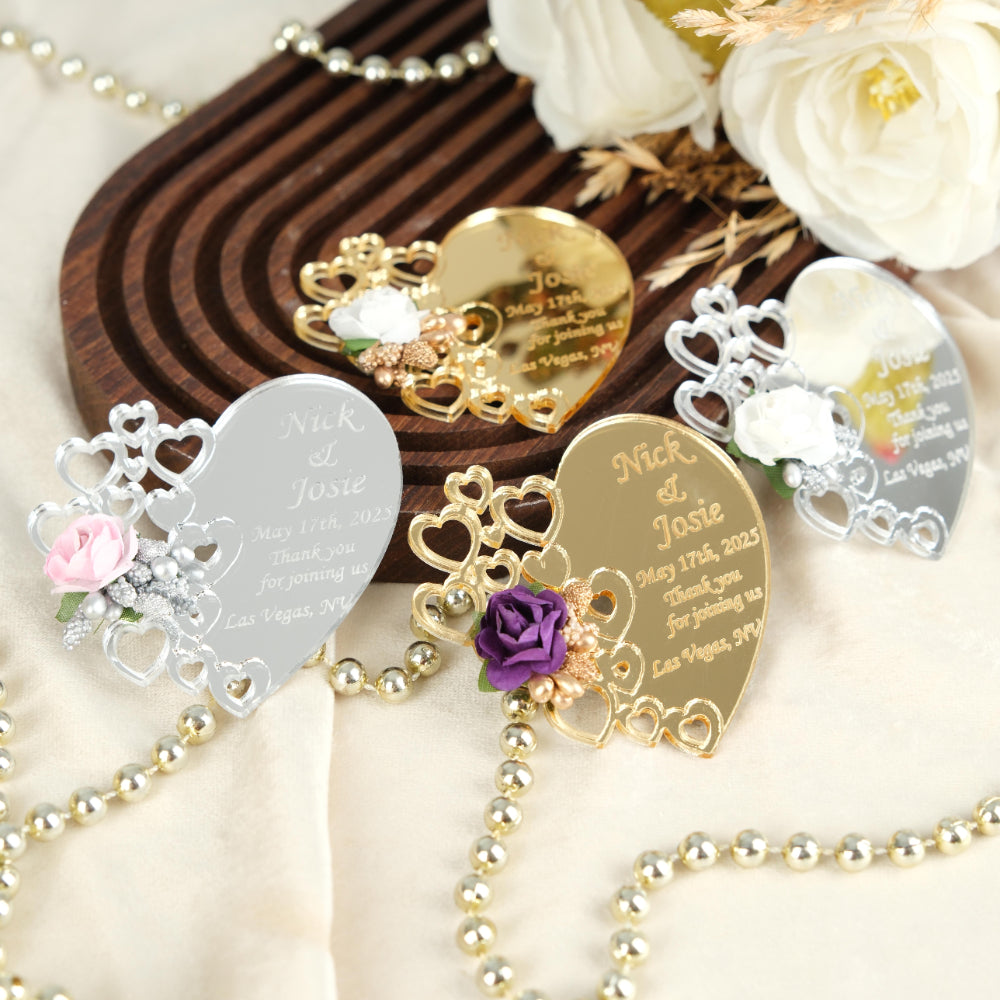 Mirror Heart Wedding Favors Magnet for Guests Bulk - Save the Date Magnet - Wedding Favors and Party Magnets - Pack of 12-1000 - Birthday and Party Magnets
